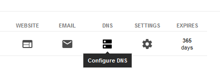 If you have multiple domains, you will need to select the domain where you will change the DNS. If you hover over the icon, you will see that the third icon to the right will be labeled Configure DNS. Click on this icon.