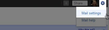 Step 1: Open Gmail and click on the gear icon in the upper right corner of your screen in Gmail and select Mail Settings from the drop down menu.