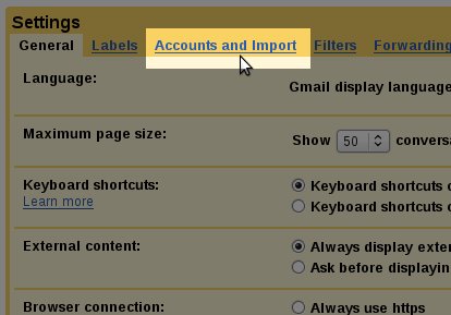 Step 2: Click on Accounts and Import and in the Check mail using POP3 area, click the link: Add a POP3 mail account you own.