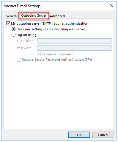 Click on the Outgoing Server tab to make sure you're using the same email address as the incoming email address.