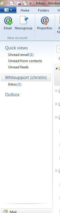 You will see your new email account listed on the right side of the screen. You can now being sending and receiving email through Windows Live Mail.