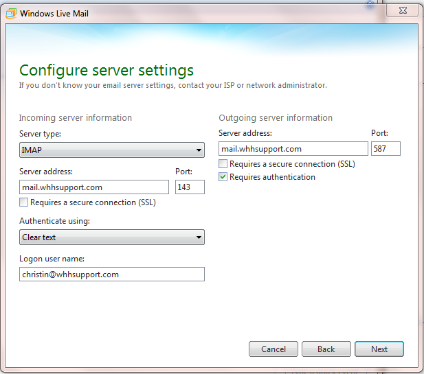 Please make sure you have created your email account in cPanel before setting up an email account in Windows Live Mail.