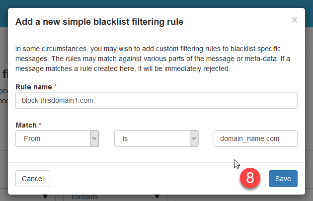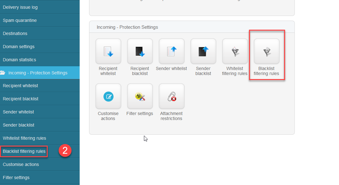 Click on Blacklist Filtering Rules under Incoming - Protection Settings.