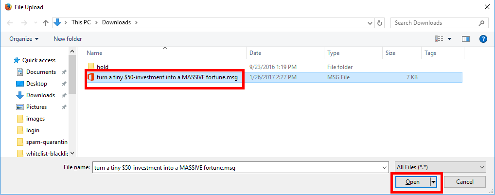 NOTE: Before you can report an email as spam, you will need to save it to your local system as a .eml or .msg file from within your email client.