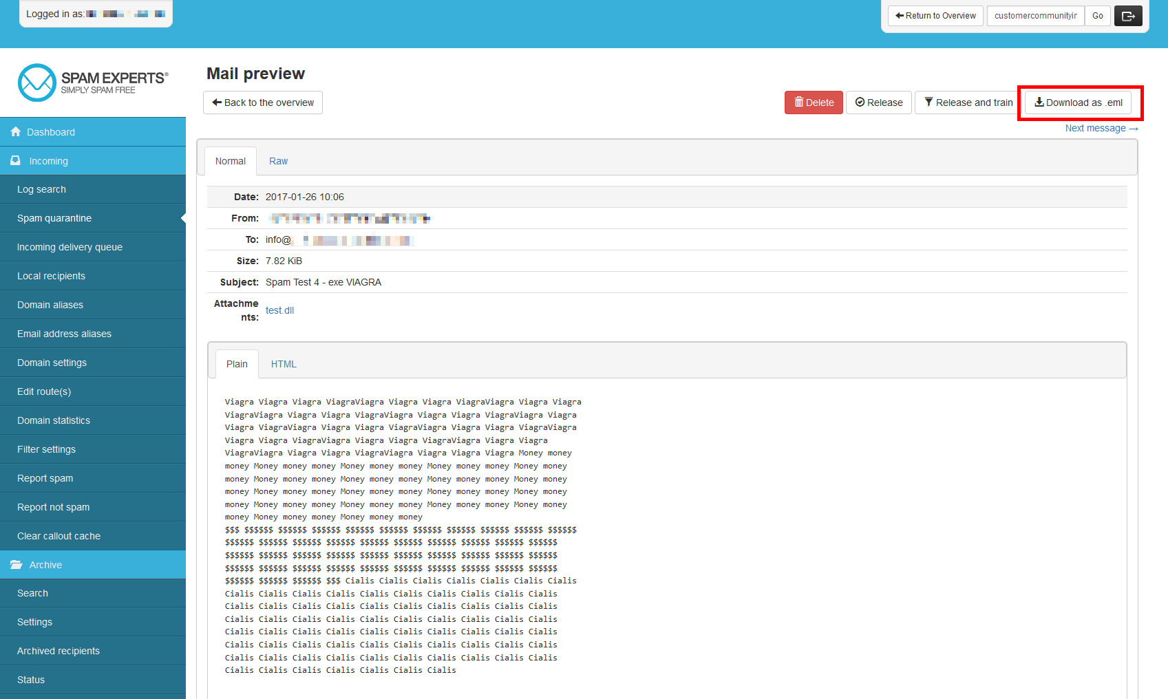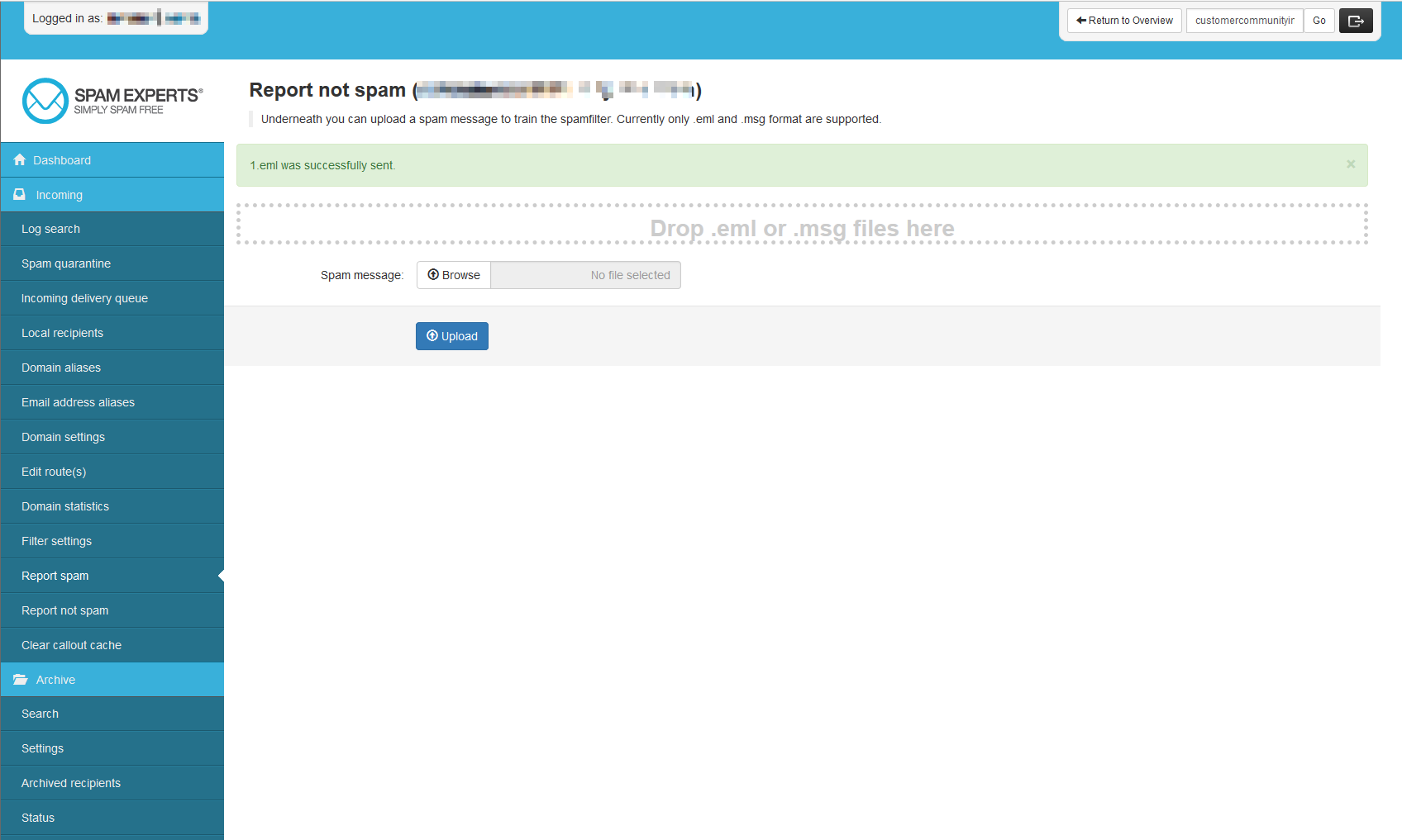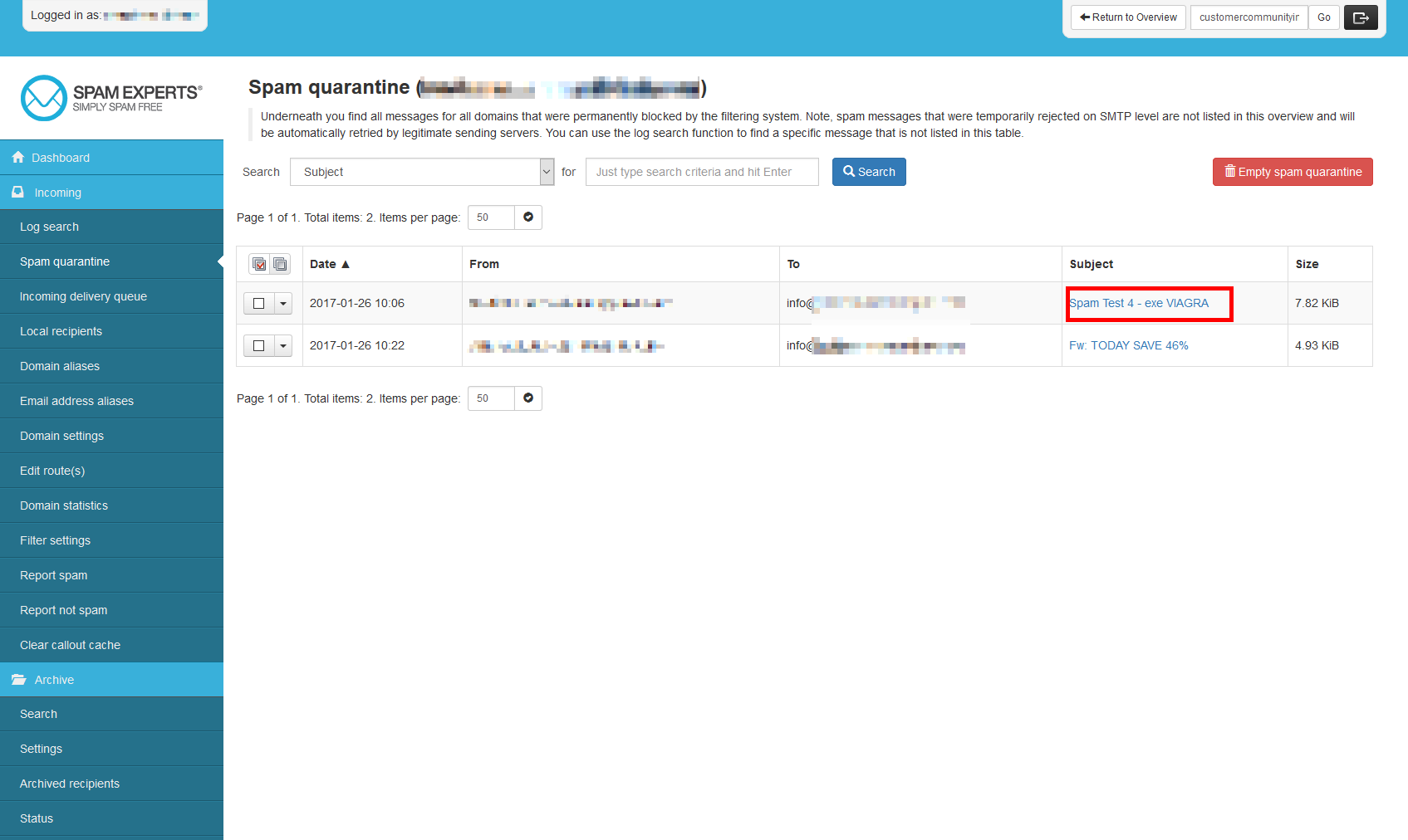 If you happen to have emails that are getting blocked by SpamExperts that are not spam, you can report them to help SpamExperts become more efficient. This will help those emails not be classified as spam in the future. In this article, we will demonstrate how to report spam email as false positives in your SpamExperts dashboard.
