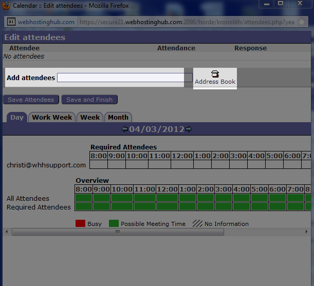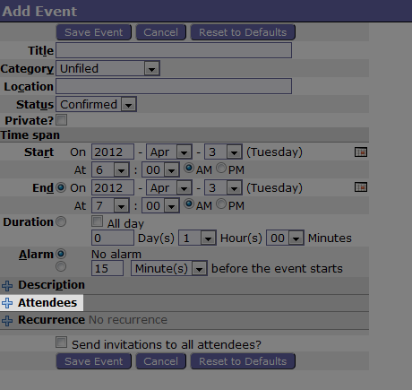 The Horde webmail client comes with a fully functional calendar application, called Kronolith, that allows you to create and manage events and tasks. In the Horde Calendar you can create all day events, set up repeating events, and even share calendars. The calendar even includes support for both the iCalendar and vCalendar formats so you can send calendar invitations to other people via email.