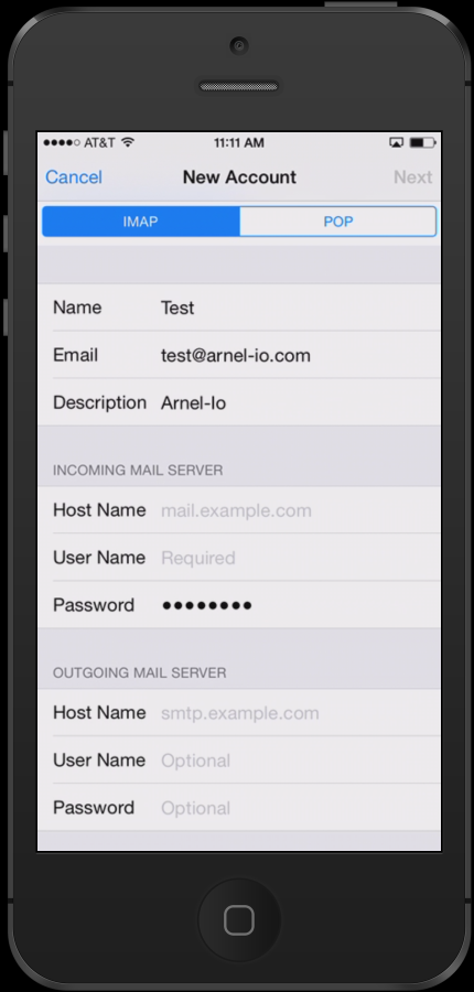 You will then see a form that includes your name, your email address, password and a description of the mail account. Fill this information for your email account.