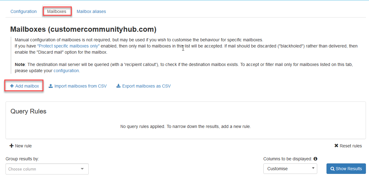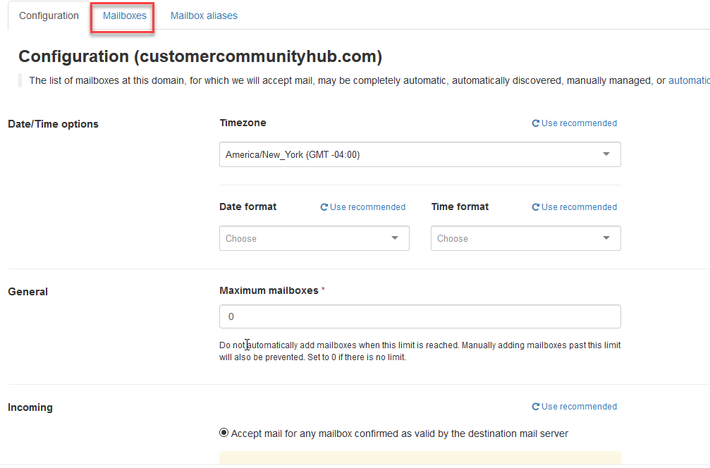 Make sure you're on the Mailboxes tab towards the top of the page. Click on the tab if needed.