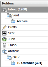 This is what you would see from the different webmail clients when viewing your archived IMAP folders: