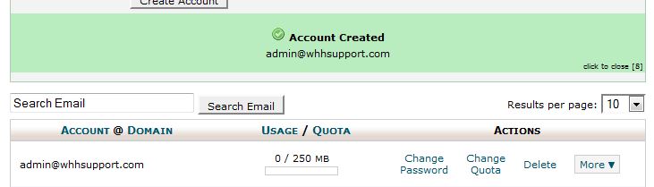 | Mailbox Quota | By default the quota size for a new email account is 250 MB, however you can change it to any size needed. |