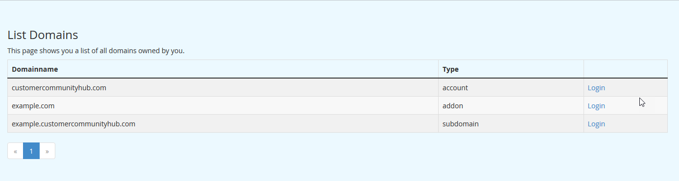 Once you click on the link you will see a list of your domains or subdomains (if you have more than one). Click on the Login link to log into the Spam Experts Dashboard.
