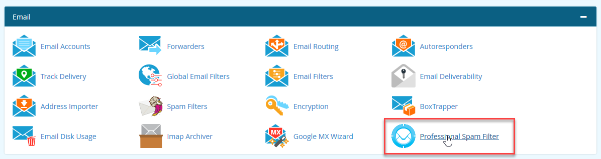 Scroll down to the Email section, then click on Professional Spam Filter.