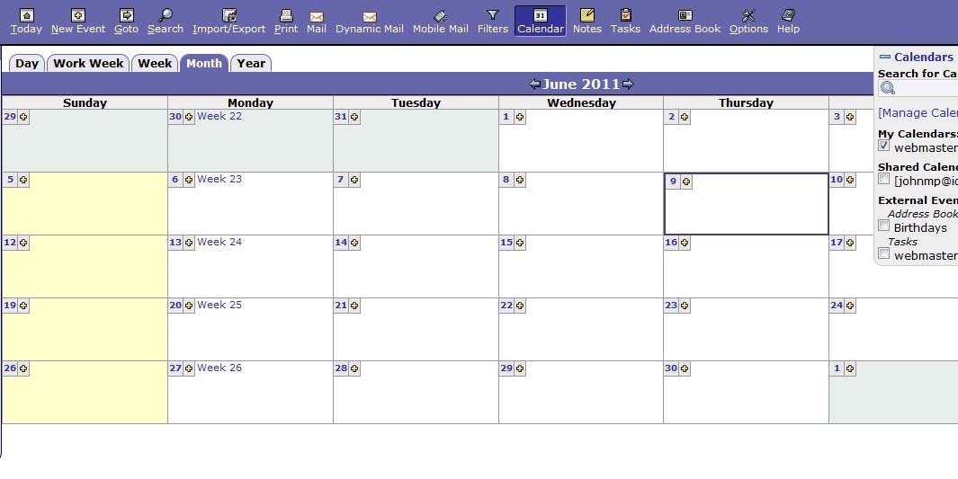 If you want to use your webmail as a calendar, Horde is the only webmail client currently offered that comes with a built-in calendar that you can use to send reminders to yourself or any other contacts in your Address Book.