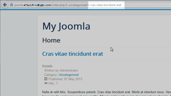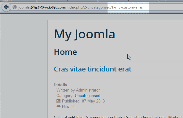 Now when you visit your article you will see the new Alias in the address bar like the snapshot to the right.