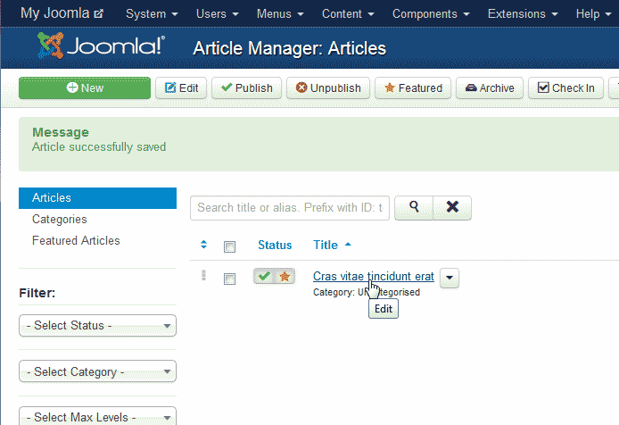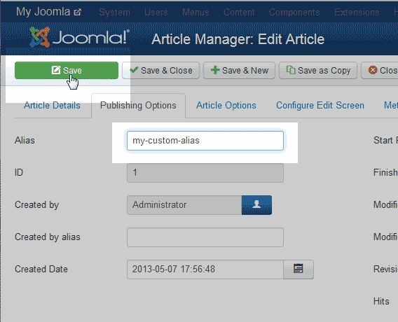 By default, Joomla will use the title of the article in lower case separated by dashes. See image to the right. You can change this to your specific need. The following steps will teach you how to change the Alias for your articles in Joomla.