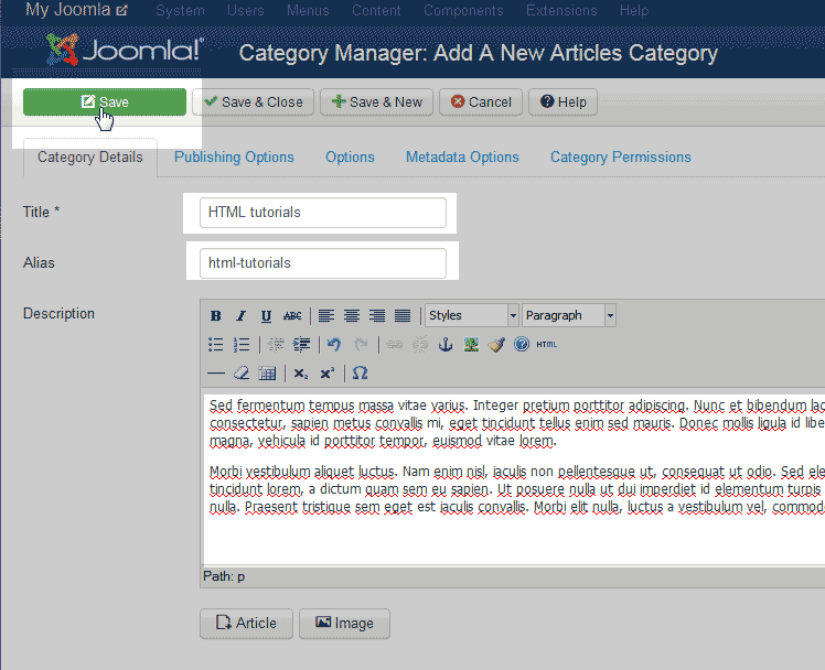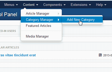 When you create new articles you will notice that the article will be placed in the default Uncategorized category. (See image to the right) To get your articles to show in specific categories you can create categories through the Joomla Dashboard. Below are the steps to create a category inJoomla.