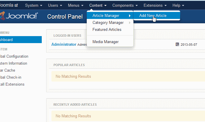 Once you get into the Joomla Dashboard, you can start adding content to your Joomla site. This article will teach you how to create an article in your Joomla website.