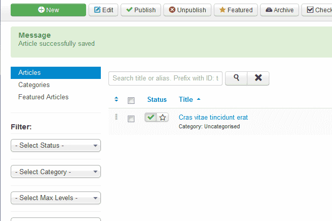 Creating the article is the first step. After you have the article created, you will need to add the article to your frontpage. The next article will teach you how to add a Featured Article in Joomla.