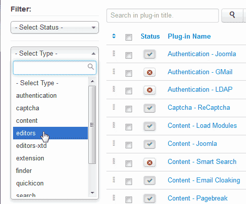 In the filter section on the left, select the "editors" type from the Select Type drop box.