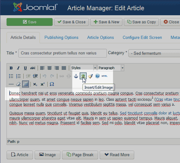 Adding text and links is the first step in creating your Joomla website content. The next step is knowing how to insert images. The following steps will explain how to insert uploaded images that are on your server and how to "hotlink" images from an external source in Joomla.