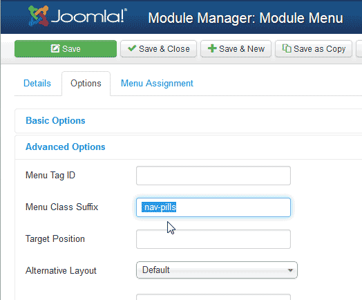 In the Menu Class Suffix box, type " nav-pills" in the box.