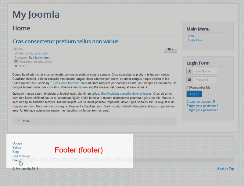 Once you learn how to create a Menu on your Joomla site, you will want to position the Menu in a certain location. This article will cover the basic locations you can use to place your Menu on your site. The main positions are: