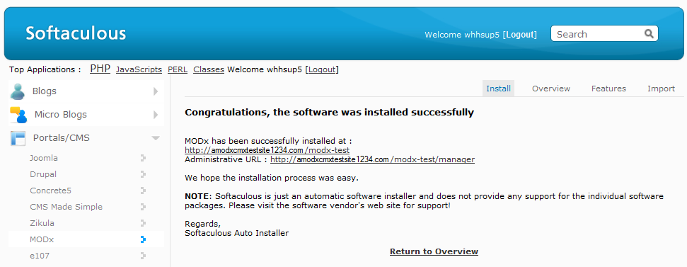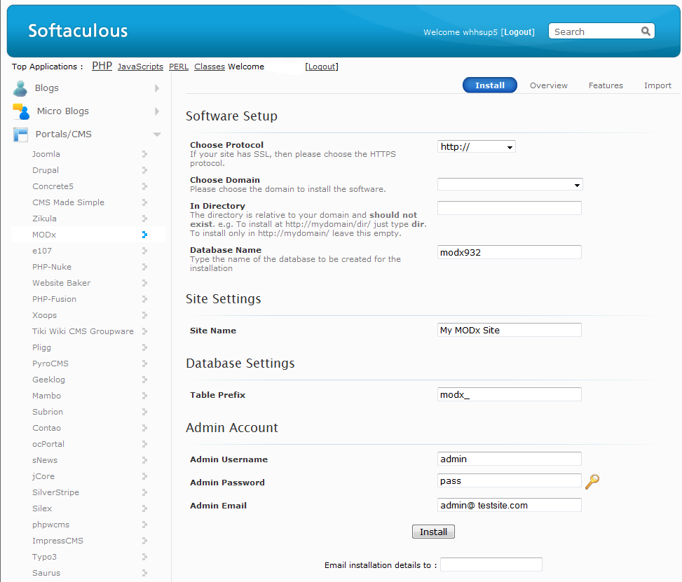 Modx is a Content Management System (CMS) created for designers. It provides a stable, non-coding-required environment with plenty of creative freedom. With a little knowledge of Javascript, HTML and CSS you can build fairly complex websites. It can be used to unify social media sites, blogs, and different websites under a single interface. The following article shows how to install MODX CMS using the Softaculous installation software.