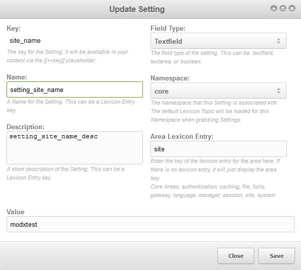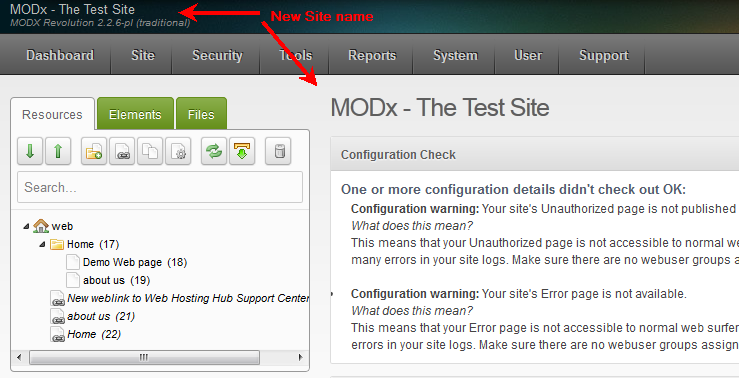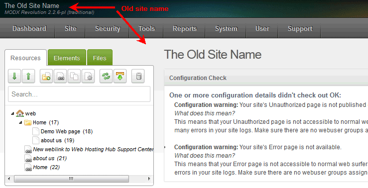 Changing the Modx Site Name
