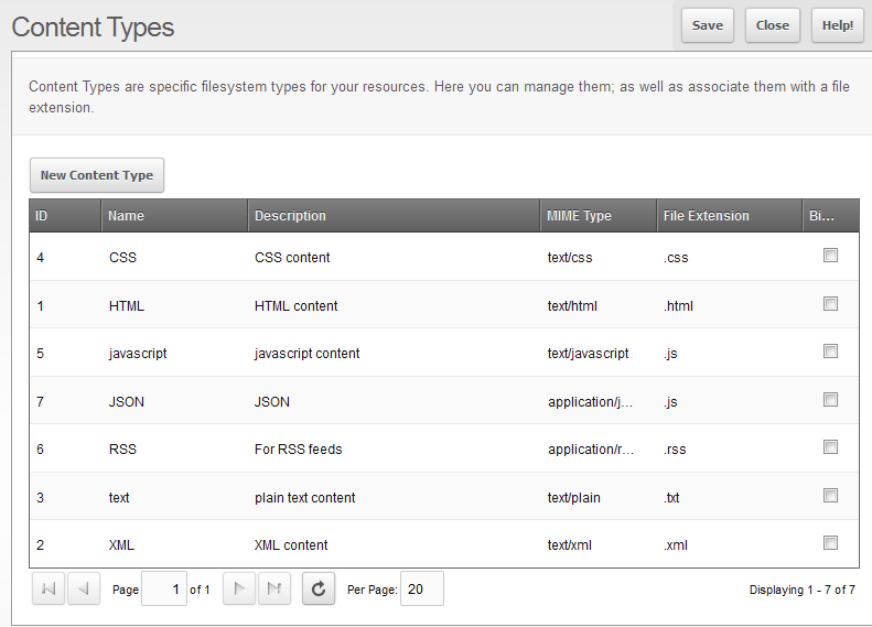 Modx reads the resource files that you incorporate into the website that you are creating. These files all have a type and Modx refers to them as Content Types. Each content type is associated with a file extension that identifies the file so that it is properly rendered by Modx. For example: