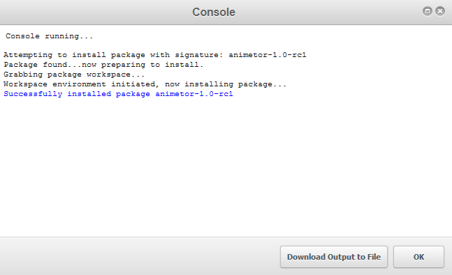 The Download Output to File button allows you to get a copy of the CONSOLE window. You should use this option if there are any errors in loading the template.