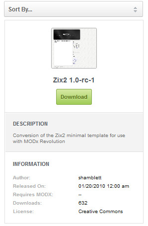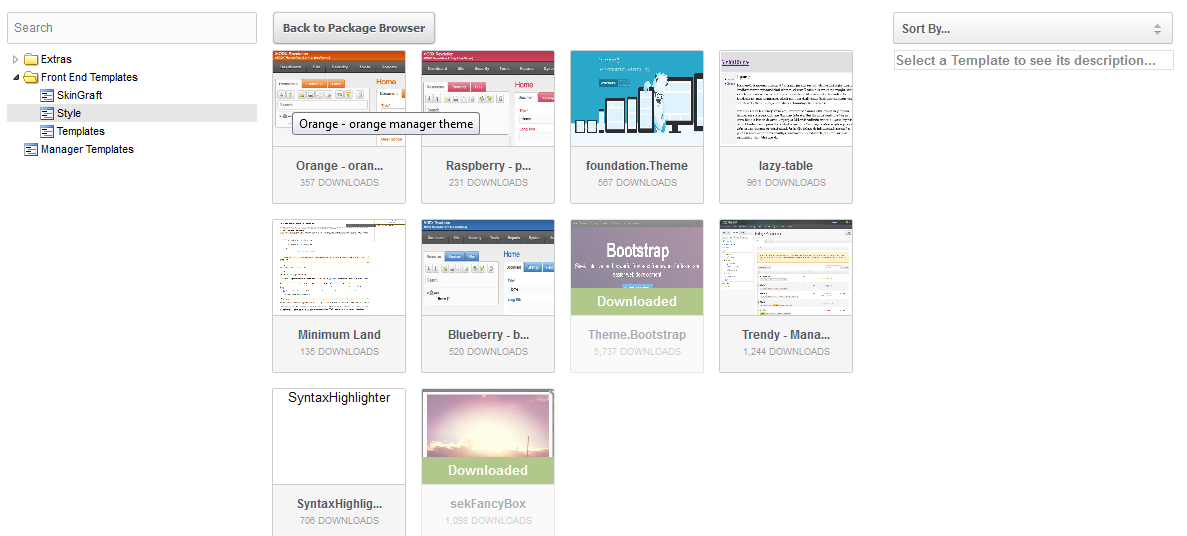 To start the process of obtaining Modx templates, you will need to launch the Package Management tool (see How to use Package Management in Modx) and then select a template in the Modx Extras website.