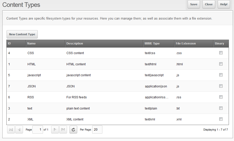 Like many applications, Modx assigns the handling of specific content types so that they can be correctly opened in browser by applications within your computer. A content type is an identifying extension that allows protocols such as HTTP to identify a file type so that the internet browser knows how to handle the file. In email, content type is often called a MIME type (Multipurpose Internet Mail Extensions). When the extension of the file is recognized, the internet browser (or email application) understands how to open the file if, for example, it were a file such as an audio file or video file. Modx handles these settings for the different resource types that you may use. Since Modx is generating the page, it will need to know how certain file types should be handled. Modx content type settings can be added and viewed within the System menu of the Modx Dashboard. The following article steps you through finding these settings and adding to them as needed.