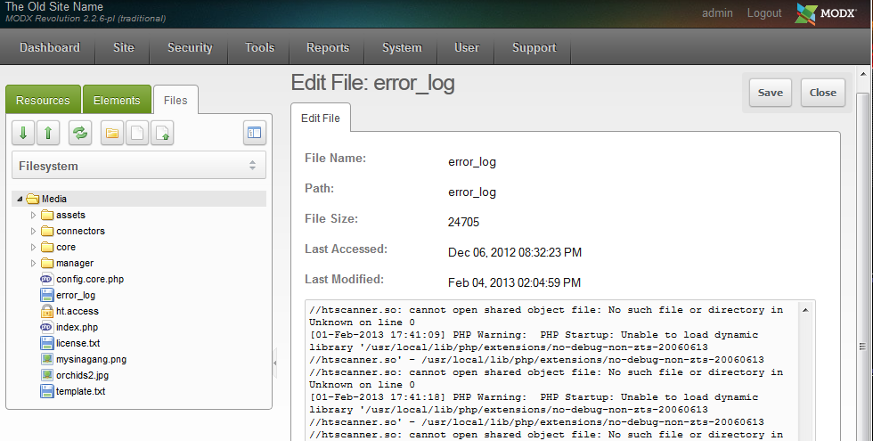 One of the common tools available for troubleshooting issues for a website is the error log. It is important to understand that Modx shows an error log for problems or flags that are set by developers of Modx. Additionally, you can see an error log generated by PHP when there are problems with PHP code within the Modx CMS. This log is not the same as the one generated by Modx. The following article describes both types of error logs and demonstrates how you can view both types of logs within the Modx Administrator Dashboard interface.