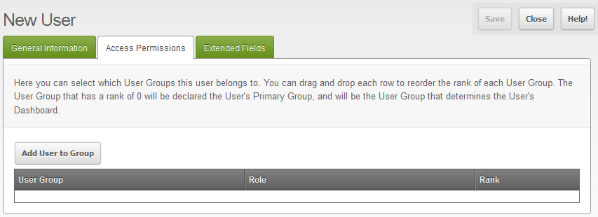 - After filling out the fields for your new user, click on the next tab called Access Permissions to proceed to the next section.