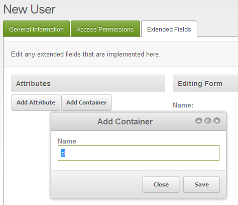 Occasionally, you will find that there are values or organizational headings that may be applied to your users that are not in the typical database area for your user. This means that you you will not see these items in the General Information tab when creating your user. In order to provide support for these items, Modx has provided an option called EXTENDED FIELDS. Here's an illustration that describes them: