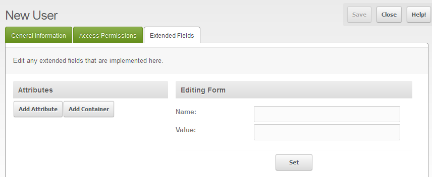 - After you have finished setting the User Group and Role for the user, click on the next tab labeled EXTENDED FIELDS.