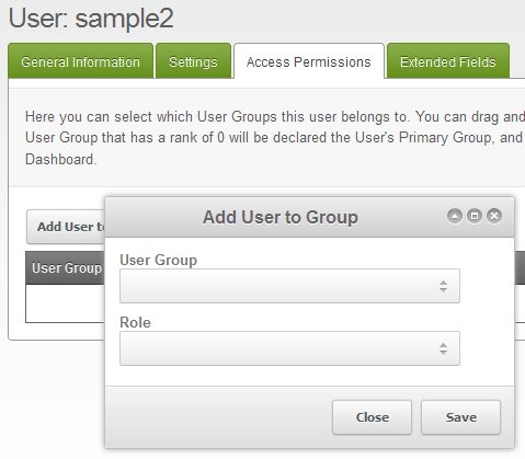 Click on the USER GROUP field and also ROLE to assign the user to the user group and role that you want for the user.