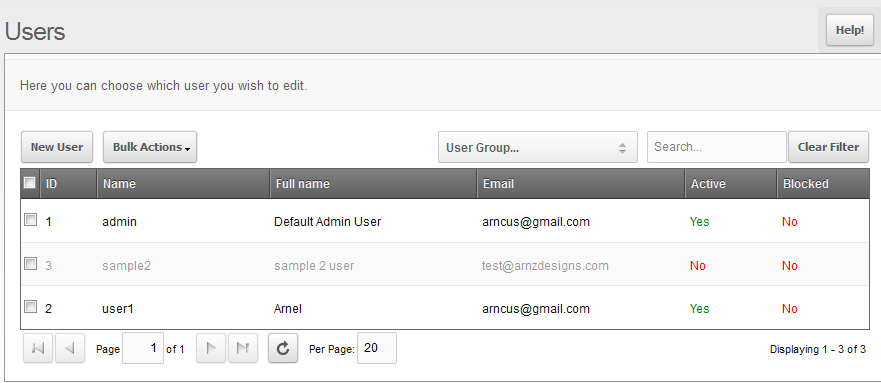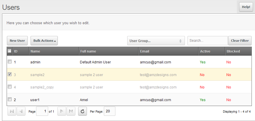 - The screen that appears will list the existing backend users and will appear similar to the following screenshot: