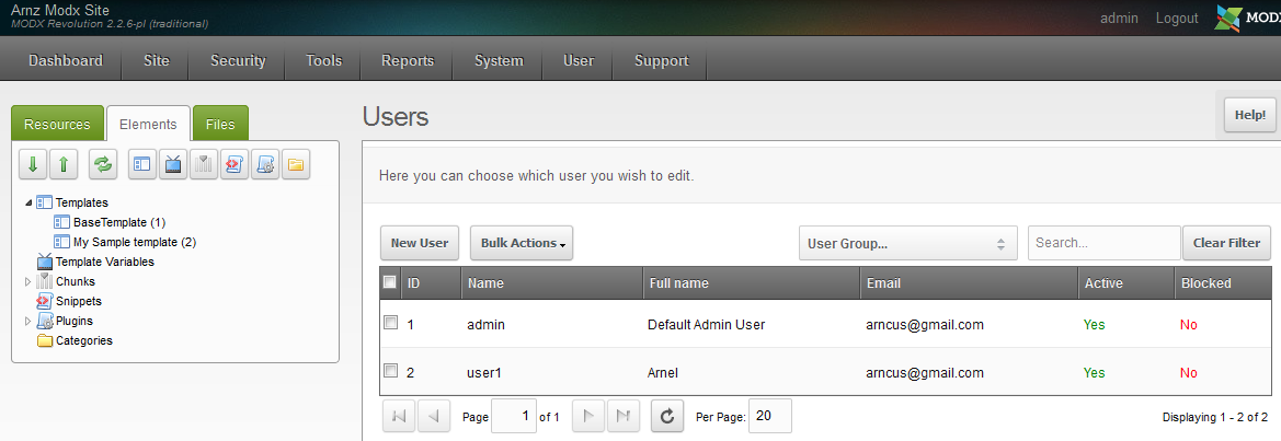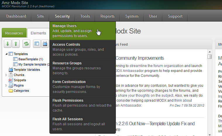 Managing Existing Users in Modx