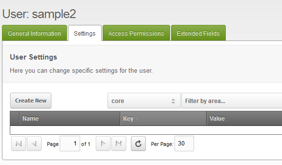 The added tab is labeled SETTINGS. You can add additional settings for the user with this option. Make any modifications for your user, then click on the SETTINGS tab and you will see the following screen: