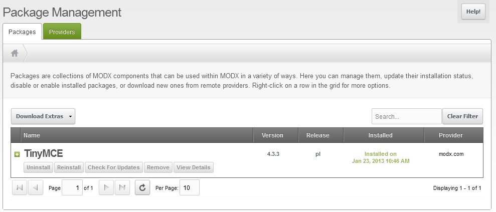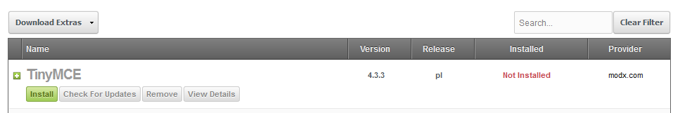 One of the most popular additions to the Modx interface is the installation of the TinyMCE editor. This application is open source and can be quickly loaded into the back end interface for Modx. The following article walks you through using the Package Manager within Modx. The TinyMCE is an invaluable tool in that it allows anyone to be able to enter text and media into the website without having to know actual code - TinyMCE editor will make that change for you. Additionally, you can switch to the HTML to edit the code directly. The following tutorial will walk you through loading the latest version of TinyMCE into the Modx dashboard.