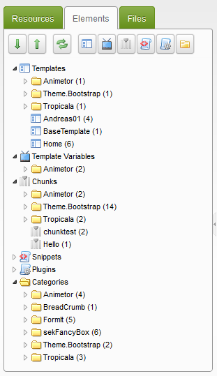 When you work in MODX, one of the core concepts in creating a page or working with a snippet is working with a template. A different template can be applied to every page, or you may have a set number of templates uniformly applied to your entire website. You can access the templates through the Resource Tree in the MODX Administrator.