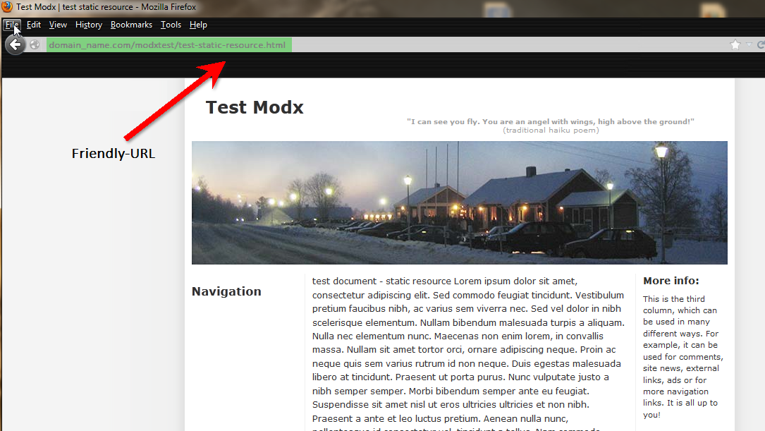 This completes the process for enabling FRIENDLY URLs for MODX. To summarize the change, here are two screenshots displaying the difference: