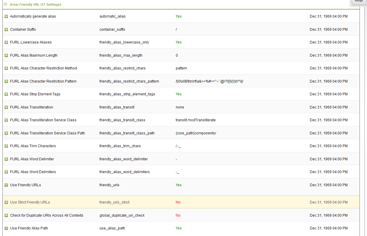 | FURL Lowercase Aliases | friendly_alias_lowercase_only | Yes |