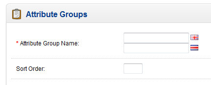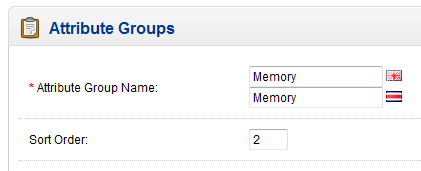 Notice that there are two fields for the Attriibute Group Names above. This is due to the fact that there are multiple languages loaded on this installation of OpenCart. These fields are mandatory and must be filled. The Sort Order determines how the Attribute Group will appear in table when a customer is looking at a product comparison.