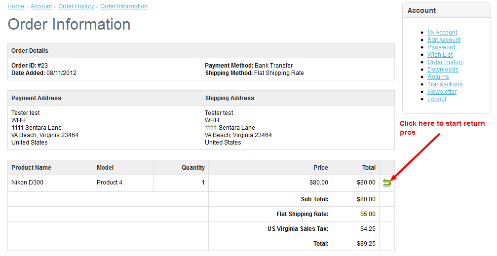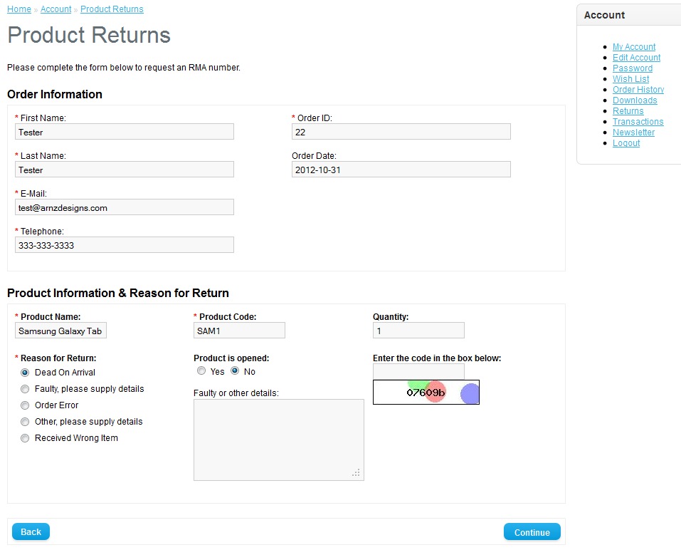 If you need to send a product back to the store, then you need to create what is called a RETURN. The following tutorial shows you how to return a product using the Customer Interface in OpenCart 1.5.