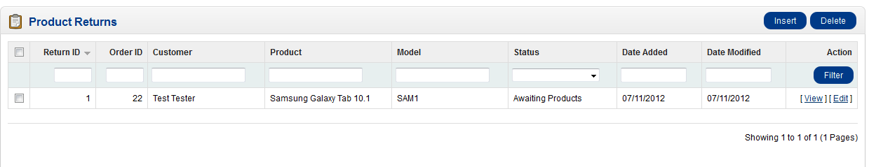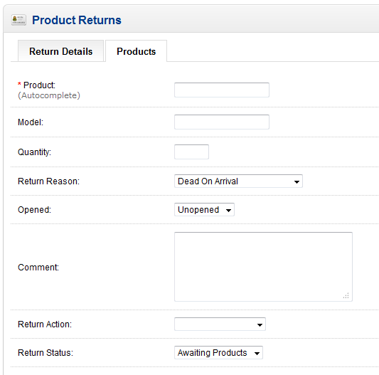 Updating Product Returns in OpenCart 1.5