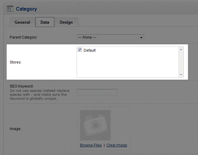 - If there is more than one store setup within your Opencart installation, you will see them listed in this box. By default, the DEFAULT store is selected. You can select other stores by simply clicking in their respective boxes. Remove the checkmark when you want to remove the Category name from that store