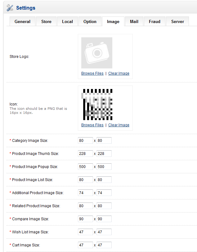 OpenCart provides an area in their interface for determining the size of graphics that will be used in OpenCart. The size in this case pertains to the dimensions of the image file - its length and width measured in pixels. These image files include the store logo and icon. There are also many other image types which can be specified. The following article explains where to make these changes in the OpenCart 1.5.