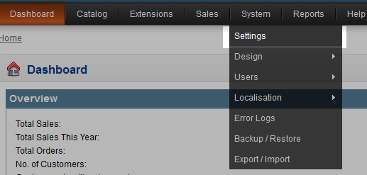 From the menu bar across the top of the screen, hover over System and click on the Settings option from the menu.